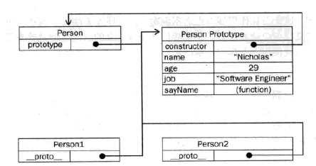 当实例化对象Person,也就是执行了构造函数Person,该实例person1又具有一个叫做_proto_的属性,它指向Person的原型对象Prototype(记住不是Person本身)。