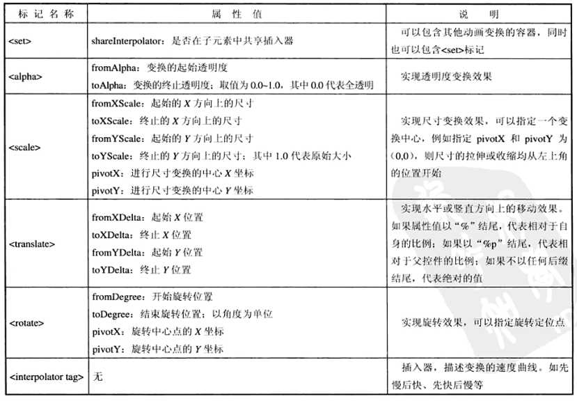 补间动画XML几种变化标记和属性如下: