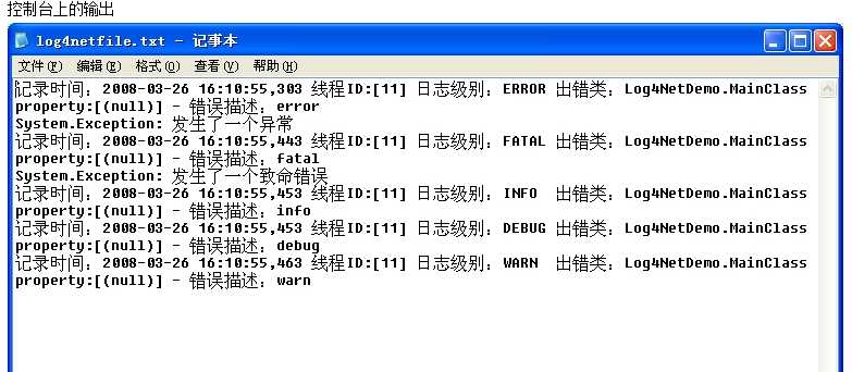 /// 利用log4net可以方便地将日志信息记录到文件、控制台、Windows事件日志和数据库中(包括MS SQL Server, Access, Oracle9i,Oracle8i,DB2,SQLite)。