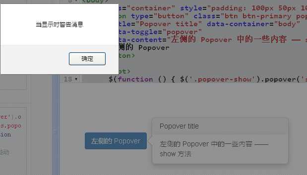 data-content="左侧的 Popover 中的一些内容 —— show 方法">