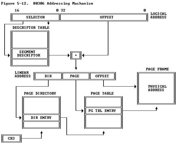 Jos利用了一个双层的页表项进行管理虚拟地址。这里的虚拟地址空间的管理,主要通过查找这两个的页表项进行。其实每个页表项又可以设置相应的控制位,也就是利用这些控制位从而实现了内存的读写保护。其虚拟地址到物理的转换可以由下图说明(选自intel手册 http://pdosnew.csail.mit.edu/6.828/2014/readings/i386/toc.htm)
