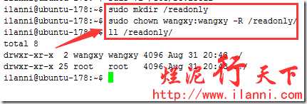现在要求新建一个目录/readonly, ailanni用户要对/readonly目录具有只读权限。