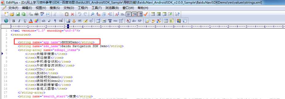 三、在eclipse中导入导航demo,然后修改AndroidManifest.xml文件中的以下代码: