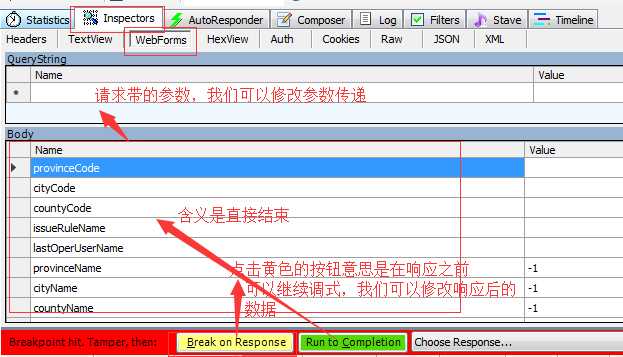 现在我们可以再点击黄色小图标 Break on Response 小按钮,如下所示: