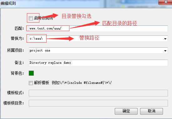 把要匹配的目录填到匹配输入框里面去,替换为 填写本地的文件目录 如上面的;点击“确定”按钮即可;