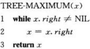 ② 如果x的右子树为NIL,那么x的后继节点必将在其祖先节点(包括父节点)中产生。并且该祖先节点必须是从下至上,第一次满足自己为自己父节点的右节点。