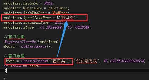 这句话是说,如果参数lpClassName是字符串的话,那它就特指窗口类名称,二窗口类名称在类结构的定义中已经初始化