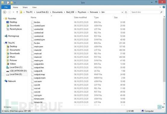 目前,我们所有的准备工作已经完成,现在我们可以开始使用工具了。在这一步我们只需要进入我们的…\Psychson\firmware\存储库然后运行build.bat。如果一切顺利,你便可以看到一个里面带许多不同文件的新文件夹。