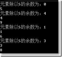 { Console.WriteLine("元素除以5的余数为:{0}",item.Remainder); foreach (var n in item.Numbers)