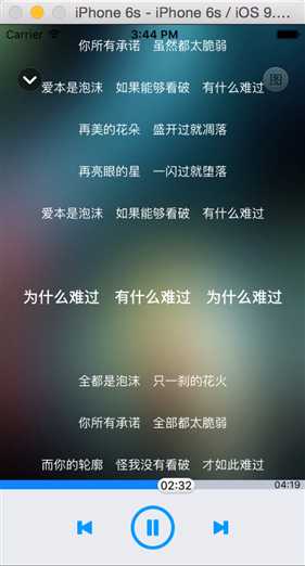 这是根据歌曲的播放来显示对应歌词的。用UITableView来显示歌词,可以手动滚动界面查看后面或者前面的歌词。