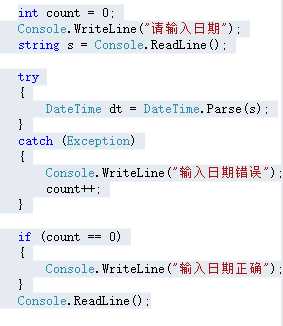 C#习题之异常语句判断日期