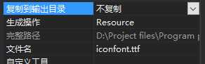 下载字体文件(参考第三节),添加到项目中,并设置生成操作为"Resource",如下图: