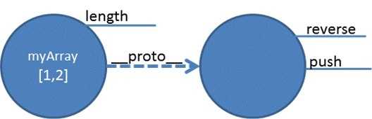 注意 myArray 的原型对象中有许多方法,包括那些在代码示例中调用的 push、pop 和 reverse 方法。因此,原型对象中的确包括 push 方法,但是 myArray 方法如何引用到呢?
