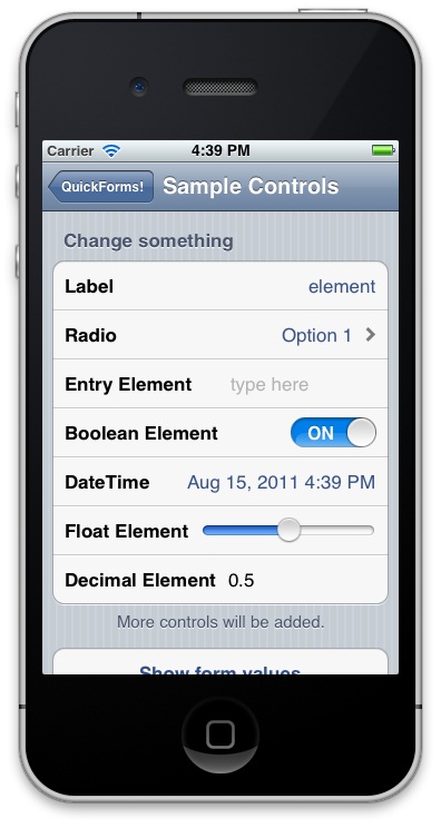 QuickDialog可以帮助开发者快速创建复杂的表单,实现包括登录界面在内的各种样式的TableView输入界面,此外,还可以创建带有多个文本域的表格及项目。