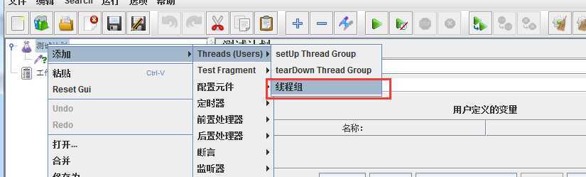 2、线程组的内容需要进行编辑,根据压力测试需要配置的一些内容