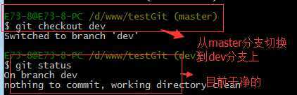 首先,我们来创建dev分支,然后切换到dev分支上。如下操作: