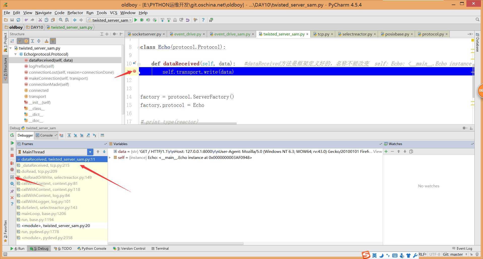 解释:自定义Echo类,名字随便起,它继承了Protocol类,Protocol类又继承了BaseProtocol类,有了最左边的图