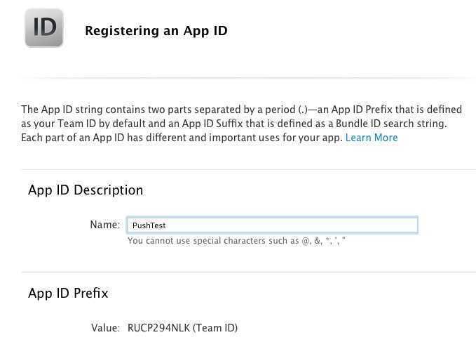 先创建APP ID,名字为PustTest, Bundle ID 为com.公司名.testpush