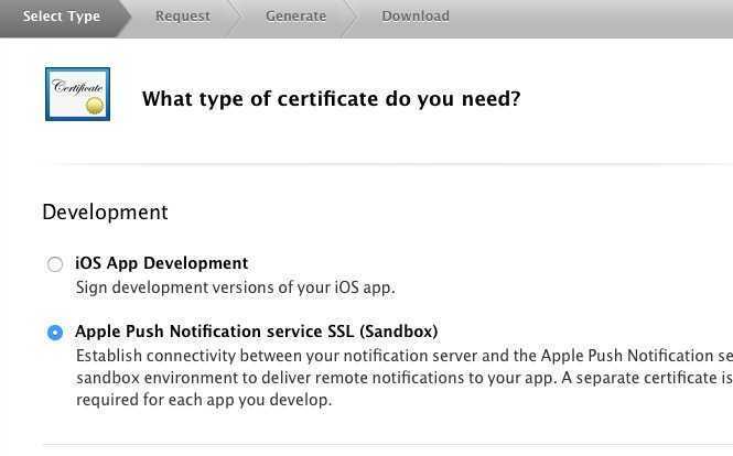 证书选择Push推送证书,下一步选择刚刚创建的APP ID