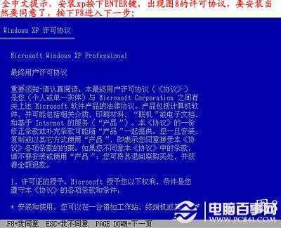 按F8同意进入下一步,这个是霸王条款,看与不看一样: