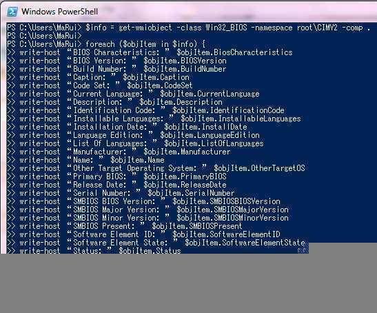 我使用一个cmdlet来查看BIOS信息,并且复制它: