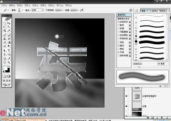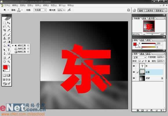 三、新建一个文字层,随意写一个字,我就用我的名字“东”吧!