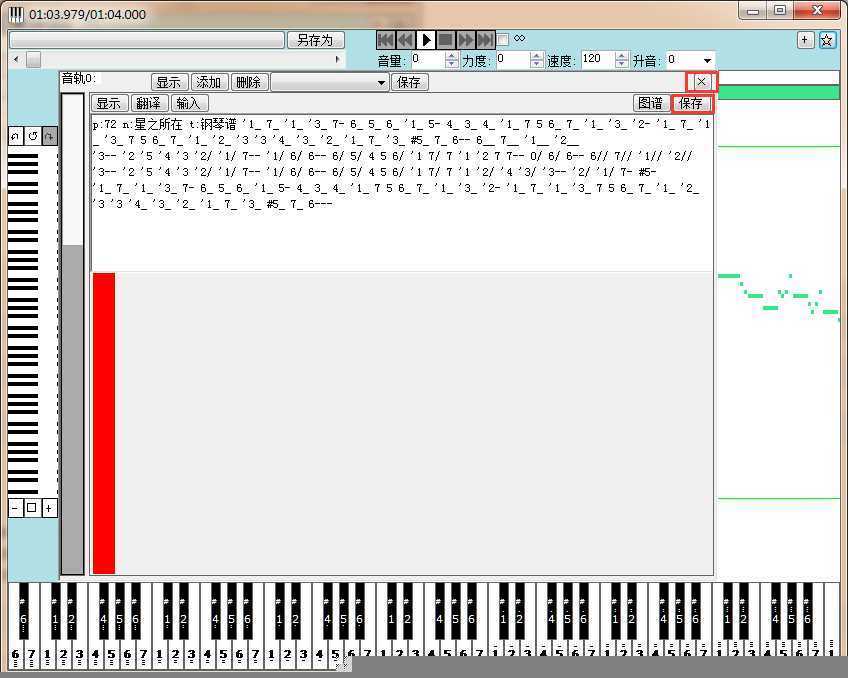 将乐谱转成文本格式(根据简谱上的字符转,有些比较复杂的可以看软件帮助)