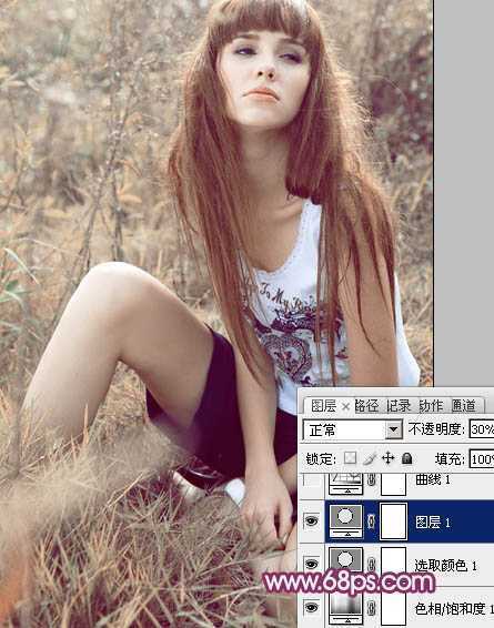 Photoshop为草地美女图片增加柔美的橙褐色效果