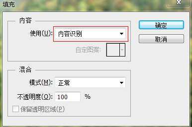 在“使用”中,选择内容识别,然后点击确定即可,水印去除完毕,效果如下: