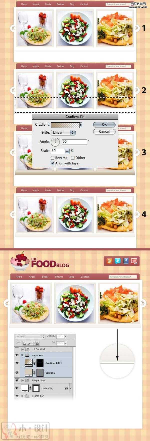 PhotoShop制作出美食blog网站首页的网页设计制作教程