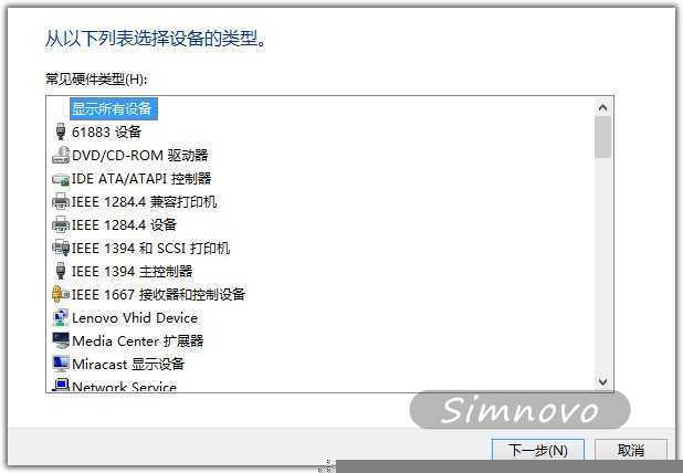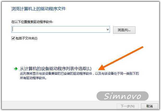 接着选择从计算机的设备驱动程序列表中选取,