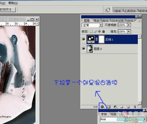 4。再次进行反相。执行混合选项(还在我刚说的那个地方进行噢)