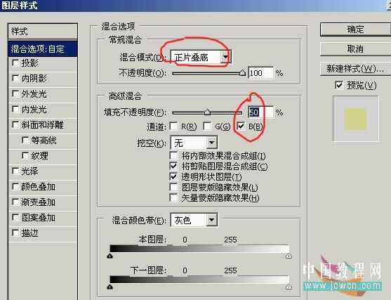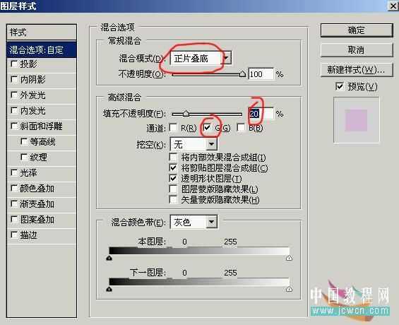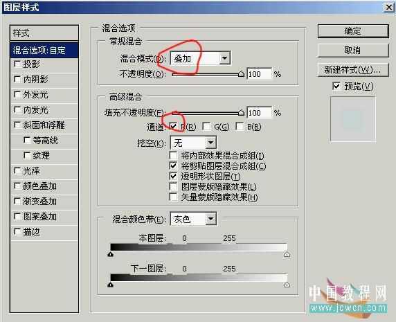 3。在此图层上进行混合选项,并对其设置如下:要注意我用红笔画圈的地方噢。。。