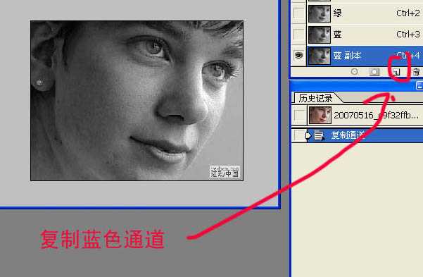 6、把蓝色通道复制一份,得到“蓝副本”通道,如下图。