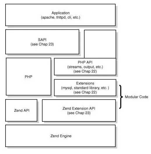 Extensions:围绕着Zend引擎,extensions通过组件式的方式提供各种基础服务,我们常见的各种内置函数(如array系列)、标准库等都是通过extension来实现,用户也可以根据需要实现自己的extension以达到功能扩展、性能优化等目的(如贴吧正在使用的PHP中间层、富文本解析就是extension的典型应用)。