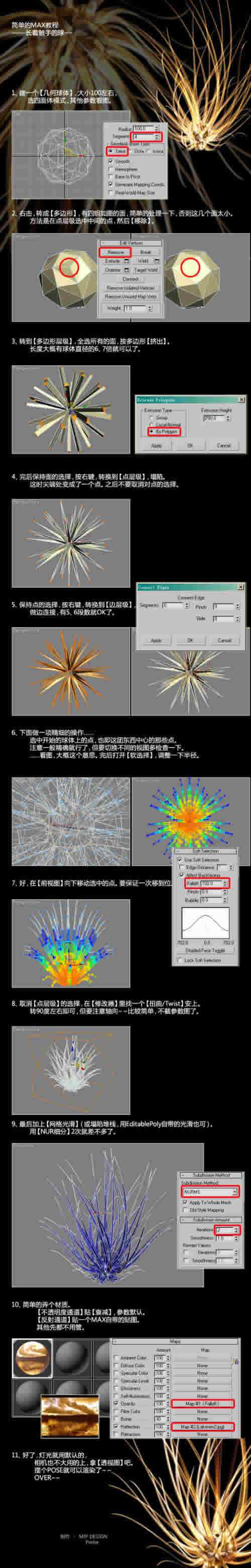图片可以点击放大3DsMAX建模实例:长着触手的金色小球原文:http://www.jb51.net/3DMAX/6064.html