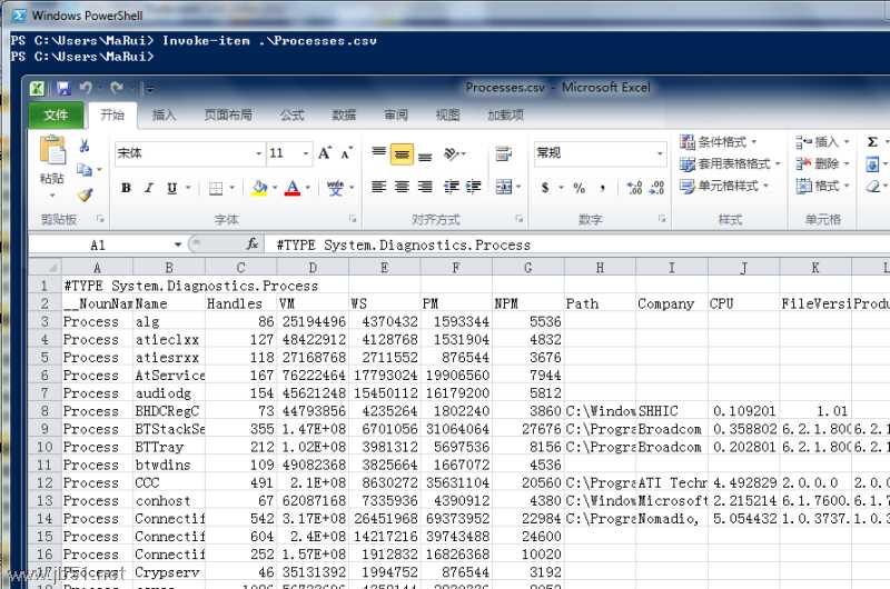 另外,在其他cmdlet中,存在其他格式的输出。例如,在"get-process"中就有"group-object","Get-EventLog"中我们可能用到"Sort-Object",甚至,我们可以输出为特定格式的文件,例如使用"Convertto-HTML"输出为html,使用"Export-CSV"输出为表格文件(可以使用Excel打开)。