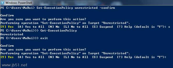 Set-ExecutionPolicy Unrestricted -confirm<enter>