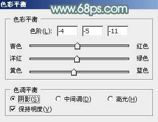 9、创建色彩平衡调整图层,对阴影,高光进行调整,参数及效果如下图。这一步给图片高光部分增加淡黄色。