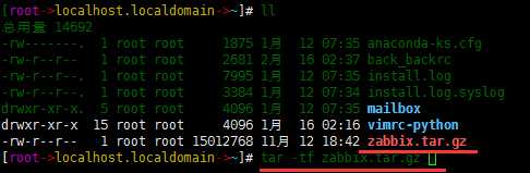 使用#tar -tf 压缩包名称,可以查看压缩包内容