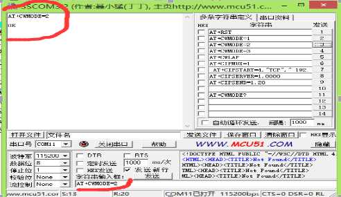 步骤1 发送AT+CWMODE=2设置为AP 模式