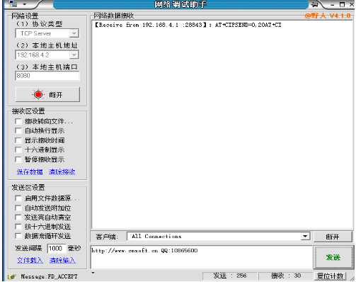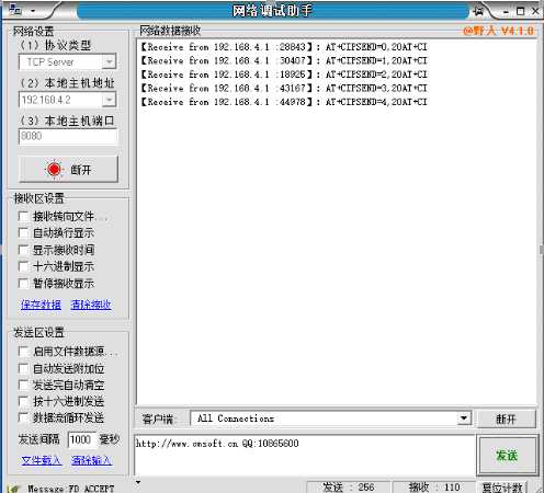 后面就是发送数据,如果出现一直连接不上关闭电脑防火墙