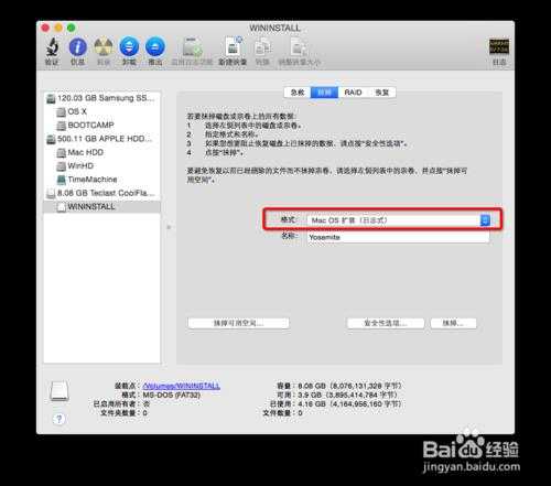 选择U盘,然后选右侧的 ‘抹掉’,格式选择 扩展日志式