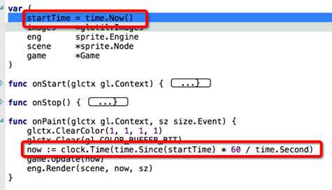 代码中的控制注意是通过 golang.org/x/mobile/exp/sprite/clock 下的 Time 控制的。
