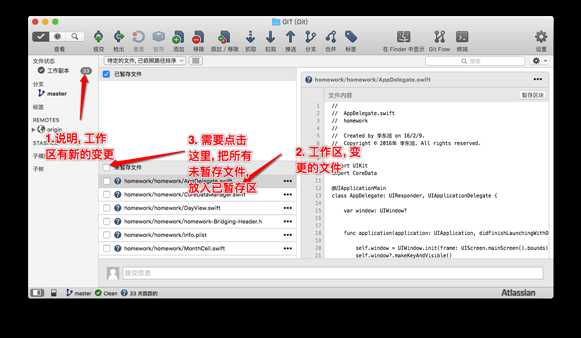 (6.2) 然后看工作区有变化, 然后把未暂存文件, 放入已暂存文件区中.
