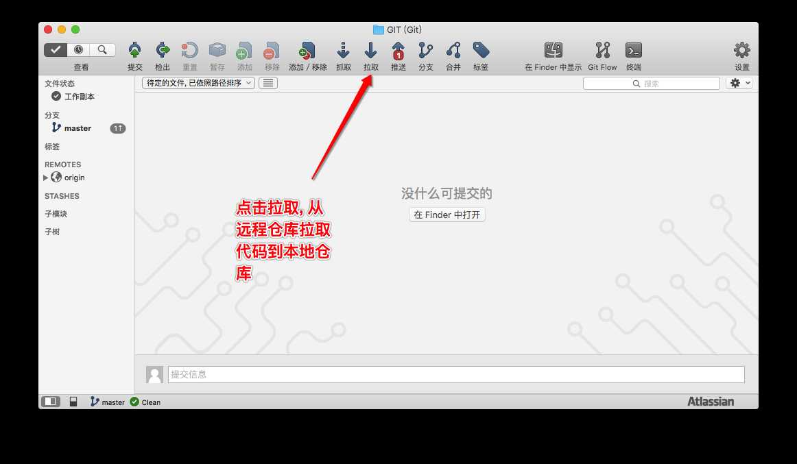 (7.3) 进入到工作区之后, 因为我是要克隆代码从远程仓库到本地, 所以直接点击拉取
