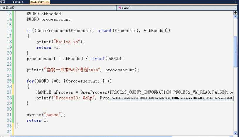 使用结构processEnty32前要设置该结构的大小:修改代码如下: