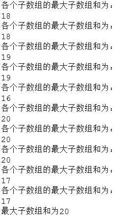 3,再设置一个数组用来存储每次循环产生的最大子数组和;然后取最大值