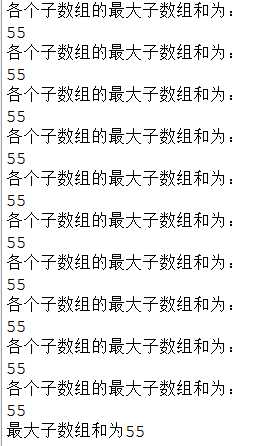 2、设置长度为10的循环依次以前十个数为头进行最大子数组的计算;