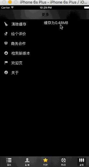 #import "MoreViewController.h" @interface MoreViewController () @property(nonatomic,strong)NSArray *titleMore; @property(nonatomic,strong)NSArray *image; @property(nonatomic,assign)NSIndexPath* indexPath; @property(nonatomic,strong)UILabel *lbl; @property(nonatomic,assign)float mpSize; @end @implementation MoreViewController - (void)viewDidLoad { [super viewDidLoad]; self.navigationItem.title=@"更多"; self.titleMore=@[@"清除缓存",@"给个评价",@"商务合作",@"检测新版本",@"欢迎页",@"关于"]; self.image=@[@"moreClear",@"moreScore",@"moreBusiness",@"moreVersion",@"moreWelcome",@"moreAbout"]; self.tableView.backgroundColor=[UIColor blackColor]; self.tableView.scrollEnabled=NO; [self.tableView registerClass:[UITableViewCell class] forCellReuseIdentifier:@"More"]; self.lbl=[[UILabel alloc]init]; self.lbl.textColor=[UIColor whiteColor]; } - (void)didReceiveMemoryWarning { [super didReceiveMemoryWarning]; } -(NSInteger)numberOfSectionsInTableView:(UITableView *)tableView{ return 1; } -(NSInteger)tableView:(UITableView *)tableView numberOfRowsInSection:(NSInteger)section{ return self.titleMore.count; } -(UITableViewCell *)tableView:(UITableView *)tableView cellForRowAtIndexPath:(NSIndexPath *)indexPath{ UITableViewCell *cell=[tableView dequeueReusableCellWithIdentifier:@"More" forIndexPath:indexPath]; if (indexPath.row==0) { self.lbl.text=[NSString stringWithFormat:@"缓存为%.2fMB",[[SDImageCache sharedImageCache] checkTmpSize]]; self.lbl.frame=CGRectMake(200, 10, 200, 10); [cell addSubview:self.lbl]; } cell.imageView.image=[UIImage imageNamed:self.image[indexPath.row]]; cell.textLabel.text=self.titleMore[indexPath.row]; cell.textLabel.textColor=[UIColor whiteColor]; cell.backgroundColor=[UIColor blackColor]; return cell; } - (void)viewWillAppear:(BOOL)animated { [super viewWillAppear:YES]; [self.tableView reloadData]; } //弹出框 确定是否清除缓存 -(void)alertView{ NSLog(@"----"); float tmpSize=[[SDImageCache sharedImageCache] checkTmpSize]; UIAlertController *alert=[UIAlertController alertControllerWithTitle:@"提示" message:[NSString stringWithFormat:@"清理缓存(%.2fM)",tmpSize] preferredStyle:UIAlertControllerStyleAlert]; UIAlertAction *ok=[UIAlertAction actionWithTitle:@"确定" style:UIAlertActionStyleDefault handler:^(UIAlertAction * _Nonnull action) { [[SDImageCache sharedImageCache] clearDisk]; // [self.tableView reloadRowsAtIndexPaths:@[self.indexPath] withRowAnimation:UITableViewRowAnimationFade]; [self.tableView reloadData]; }]; UIAlertAction *cancle=[UIAlertAction actionWithTitle:@"取消" style:UIAlertActionStyleDefault handler:nil]; [alert addAction:ok]; [alert addAction:cancle]; [self presentViewController:alert animated:YES completion:nil]; } // 选择第一列 -(void)tableView:(UITableView *)tableView didSelectRowAtIndexPath:(NSIndexPath *)indexPath{ if (indexPath.row==0) { [self alertView]; } } /* #pragma mark - Navigation // In a storyboard-based application, you will often want to do a little preparation before navigation - (void)prepareForSegue:(UIStoryboardSegue *)segue sender:(id)sender { // Get the new view controller using [segue destinationViewController]. // Pass the selected object to the new view controller. } */ @end